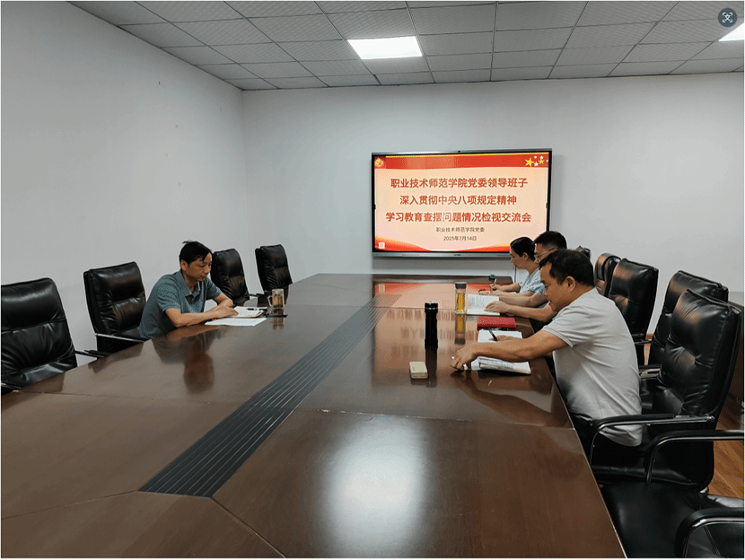 7月14日上午,职业技术师范学院党委领导班子召开深入贯彻中央八项规定精神学习教育查摆问题情况检视交流会,深入学习贯彻习近平总书记关于加强党的作风建设的重要论述,对照中央八项规定及其实施细则精神,围绕反面典型案例学习和个人查摆问题清单进行检视剖析,进一步深化思想认识、明确整改措施,推动学习教育走深走实、见行见效,赋能学院事业高质量发展。