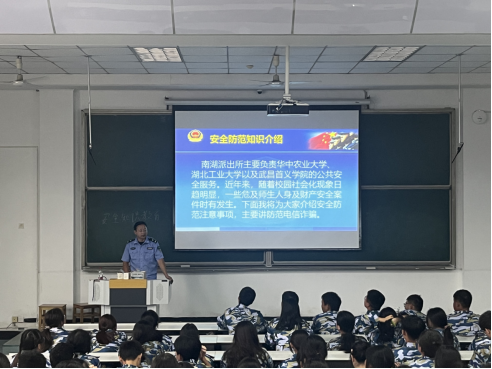 9月20日,学院邀请新生健康导师曾丹为学生开展健康讲座,曾丹医生从疾病预防和大学生医保政策解读两个方面为学生普及健康知识,以期提高学生的健康知识水平。同时学院邀请南湖派出所警官郭锋为学生做“谨防诈骗”讲座,郭锋警官向学生介绍了诈骗的常见方式,通过诈骗案例,深入浅出为学生上了一节安全教育课。