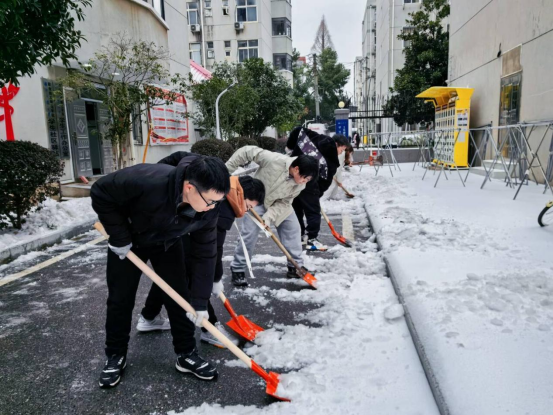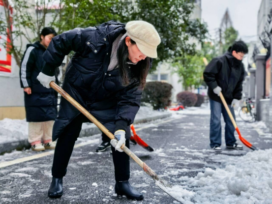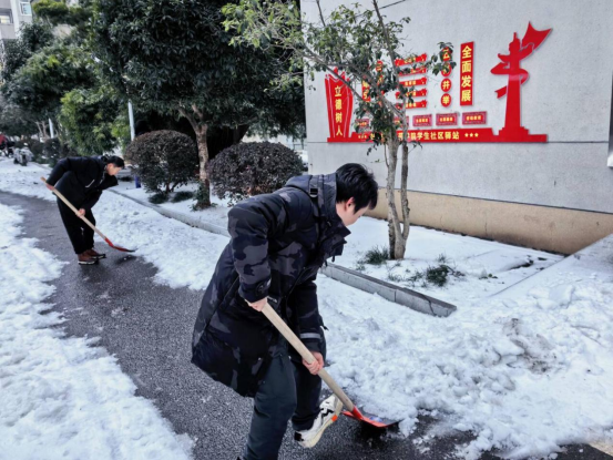 在师生默契的配合下、如火如荼的劳动下,一小时左右,原本被积雪覆盖的学生社区主干道和宿舍生活区等关键位置,变得干净清爽。师生们可以自由行走,无需担心滑倒受伤。
