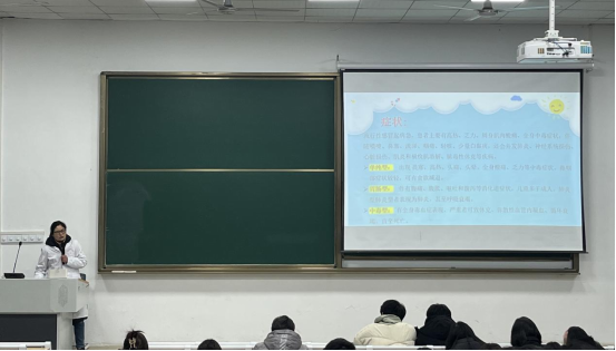在本次安全主题年级大会上,学院邀请健康导师曾丹医生作题为《春季常见传染病的防控知识》的培训,她结合案例讲解了流感病毒如何防治、诺如病毒如何防治等内容。