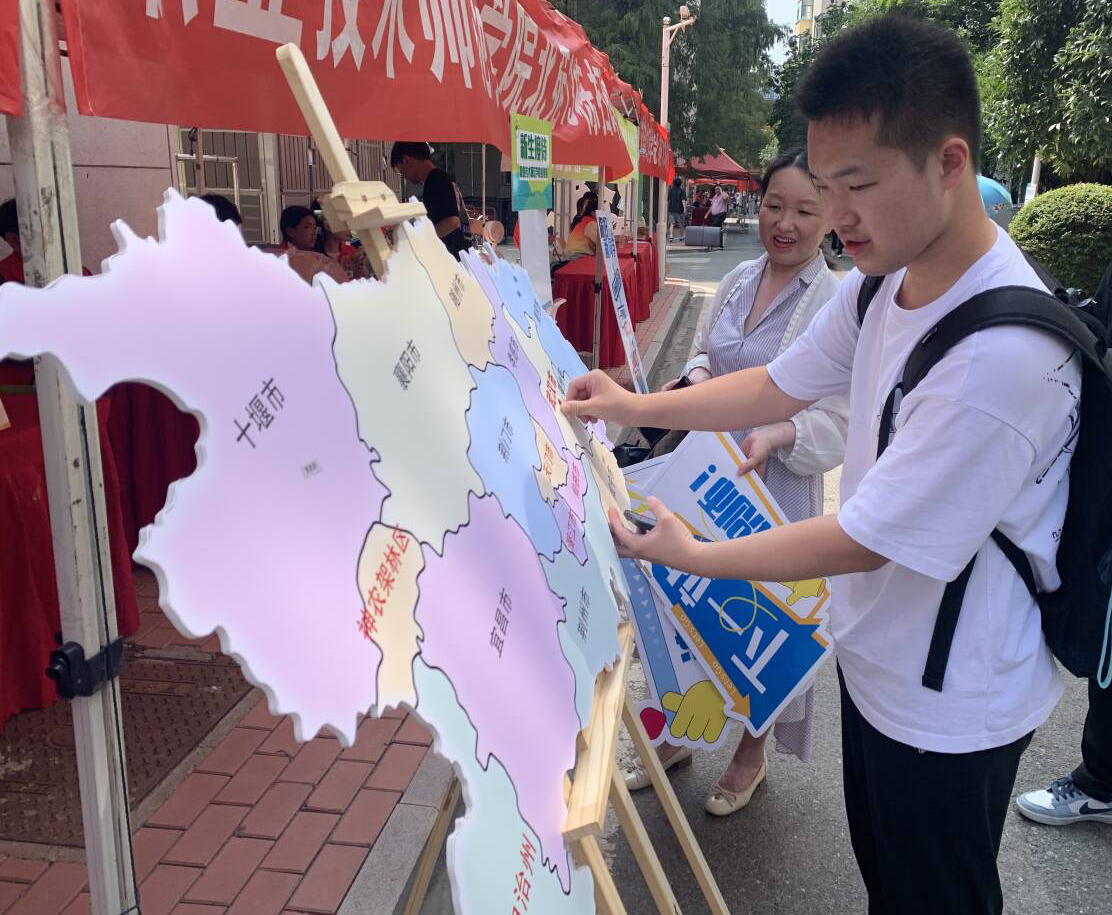 报到当天,学院在北苑13栋宿舍、北苑17栋宿舍、西区13栋、西区3栋宿舍分别设置迎新点。学生志愿者热情周到、分工明确,为新生扫码验证、搬运行李、答疑解惑、发放校园卡及新生大礼包。新生大礼包内含信封信纸,我的大学生生涯规划手册,印有“春华秋实,独树一职,勤培桃李、育人成师”的定制卡套以及防诈贴纸等,希望同学们在大学早立目标,提前规划,勤奋学习。此外,学院精心设计辅导员出镜的防诈海报,贴画类湖北省地图,引得新生驻足观看,打卡留念。