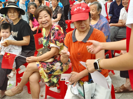 在“歌声传情”合唱挑战环节,志愿者们协助组织社区居民和学生共同演唱爱国歌曲,积极引导大家有序排队。现场歌声嘹亮,将活动气氛推至高潮。志愿者任颖激动地说:“大合唱时,我们感受到了浓厚的爱国情怀,作为志愿者,我们为此感到自豪。”活动结束前,志愿者们还引导居民在明信片上写下对祖国的祝福,这不由让社区居民张阿姨感慨万千,表示这些寄语是他们对祖国最真挚的表达。