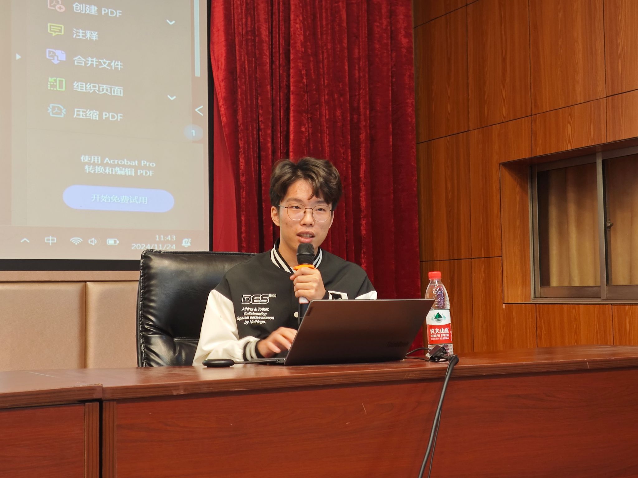 11月24日,职业技术师范学院在博学堂举办第一届学科竞赛宣讲会(中国大学生计算机设计大赛专场)。中国大学生计算机设计大赛校方负责教师汪曦、国赛获奖团队学生负责人范嘉俊受邀主讲,100余位有参赛意向的学生现场学习。