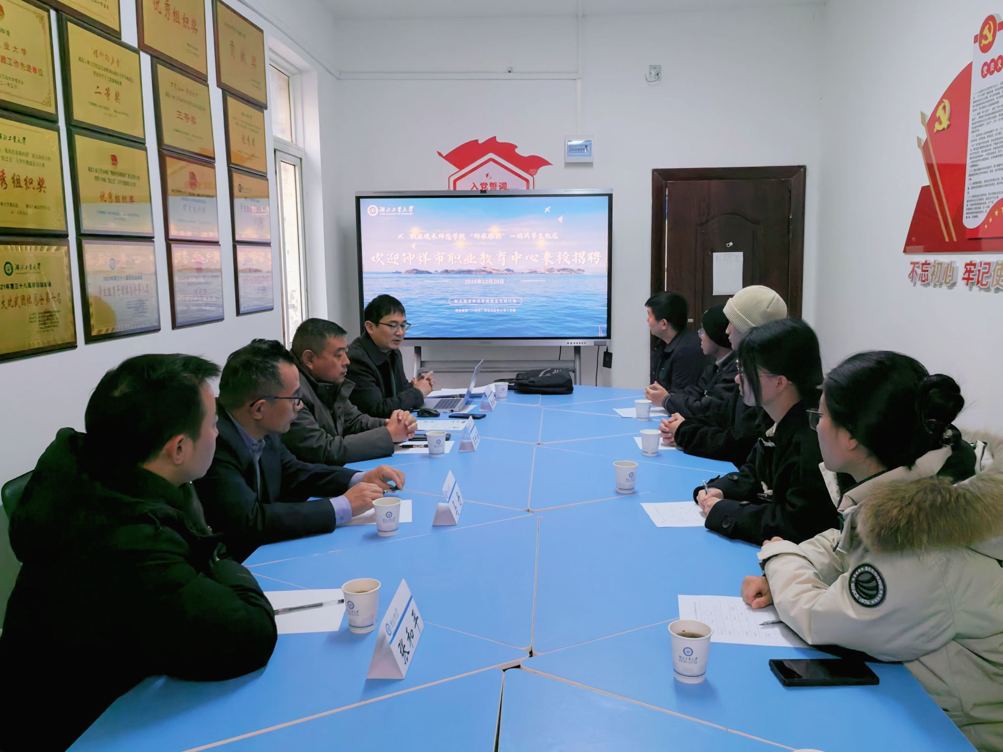 12月20日,钟祥市职业教育中心党委书记王世海、副校长李祖华来校招聘,在职业技术师范学院“师承雅韵”“一站式”学生社区与意向学生面对面座谈。职业技术师范学院院长马丹、教授委员会委员张和平参与座谈。