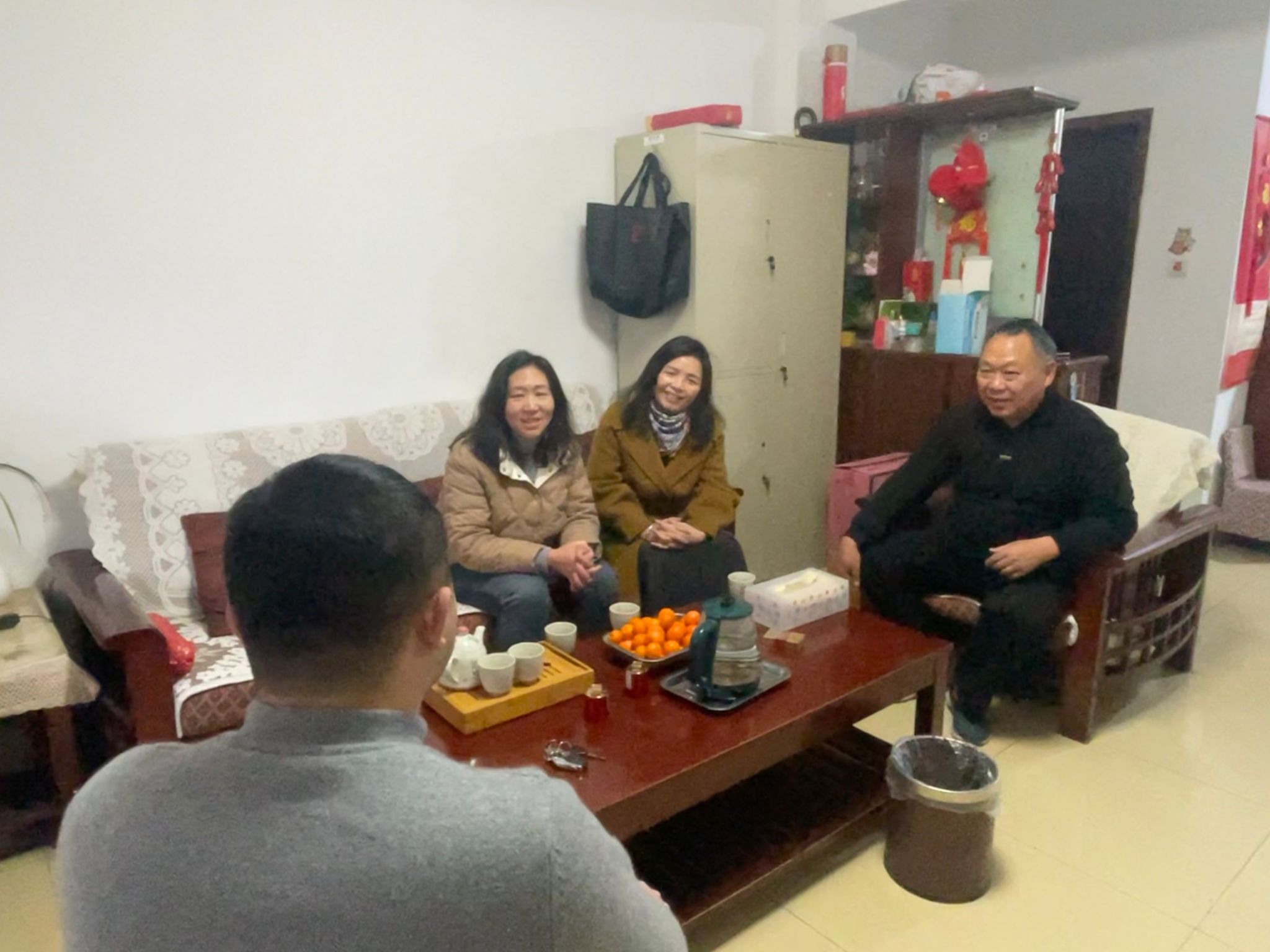 2024级小郭同学的父亲平时就很想和学校老师们多交流,寒假家访刚好提供了机会。党委副书记章莹、辅导员柳申奥、班导师朱秋月一行前往小郭同学家中,了解了小郭同学从小到大的成长故事,现场根据小郭的专业特点、个人兴趣以及未来职业愿景,为小郭进行生涯规划。