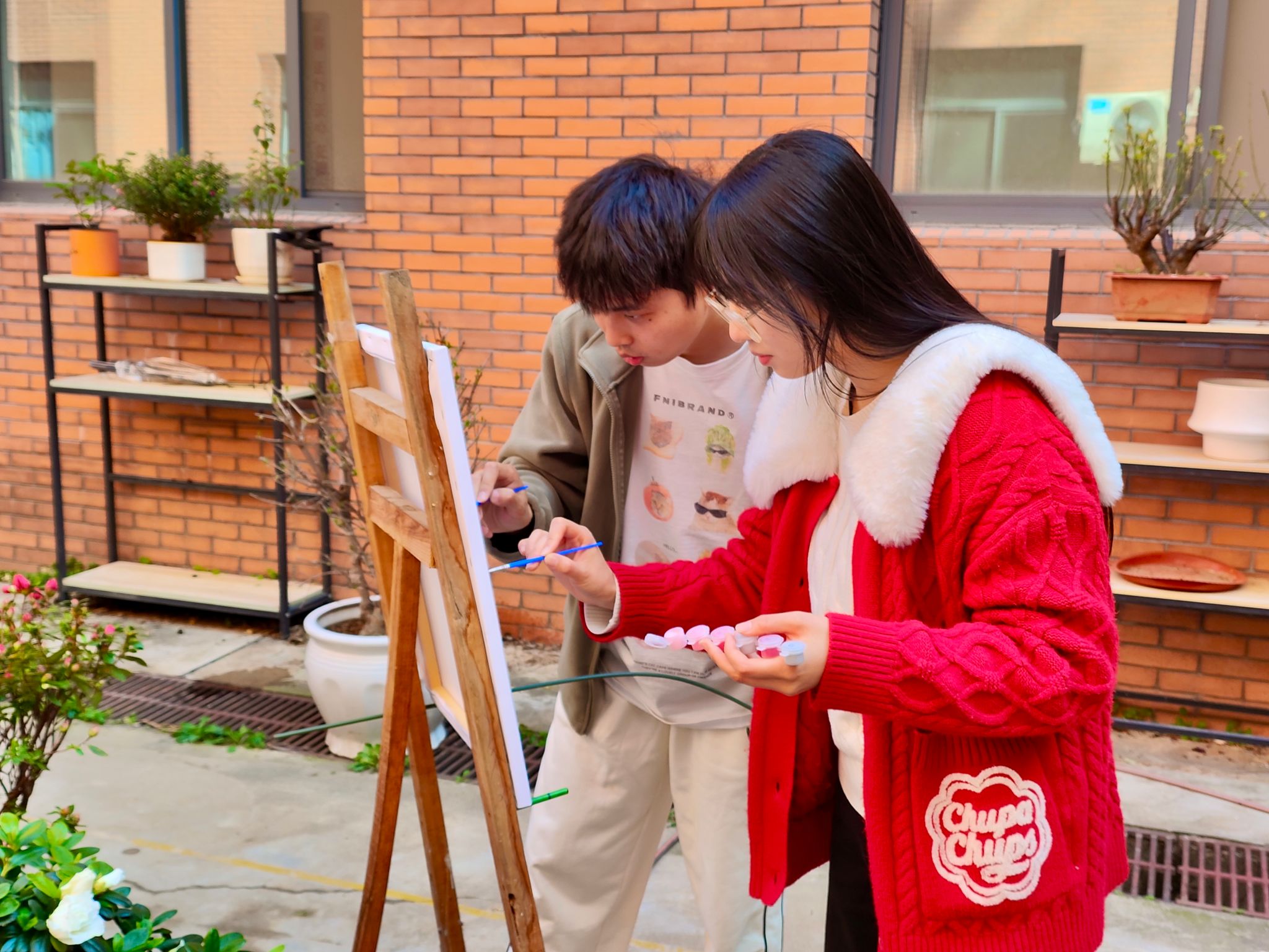 辅导员周越超介绍说,萌生想法易、实际落地难,这也更显最终呈现的美丽园区的可贵。如何根据学院园区本身的砖红色,搭配满园花色、画色?如何根据师生特长,合理分组、分工?如何让师生掌握花卉养护方法、画作绘制技巧?如何利用装扮好的园区持续开展教育教学活动,让“美”由园区表象,深入师生内里?