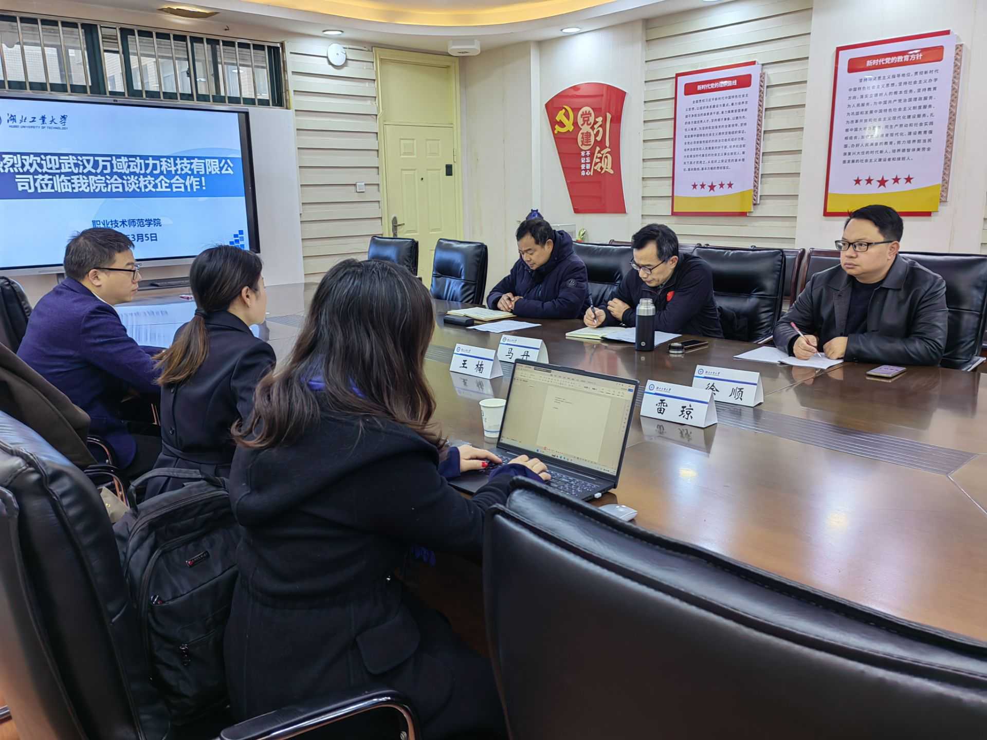 3月5日,武汉万域动力科技有限公司王楠副总经理一行来我院洽谈校企合作事宜。我院院长马丹,副院长胡茂波和徐顺老师参加会谈。