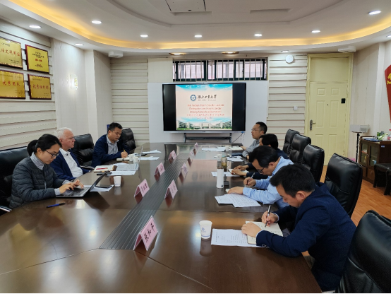 国际交流与合作处副处长洪文琦重点介绍了我校向湖北省科技厅申报2024年青年教师绿色新能源光伏技术培训班赴德培训的进展情况,希望以此为依托助力我校办好2024年科技部非洲国家“太阳能技术及应用国际培训班”,进一步拓展“一带一路”非洲国家职教师资培训等方面的合作。