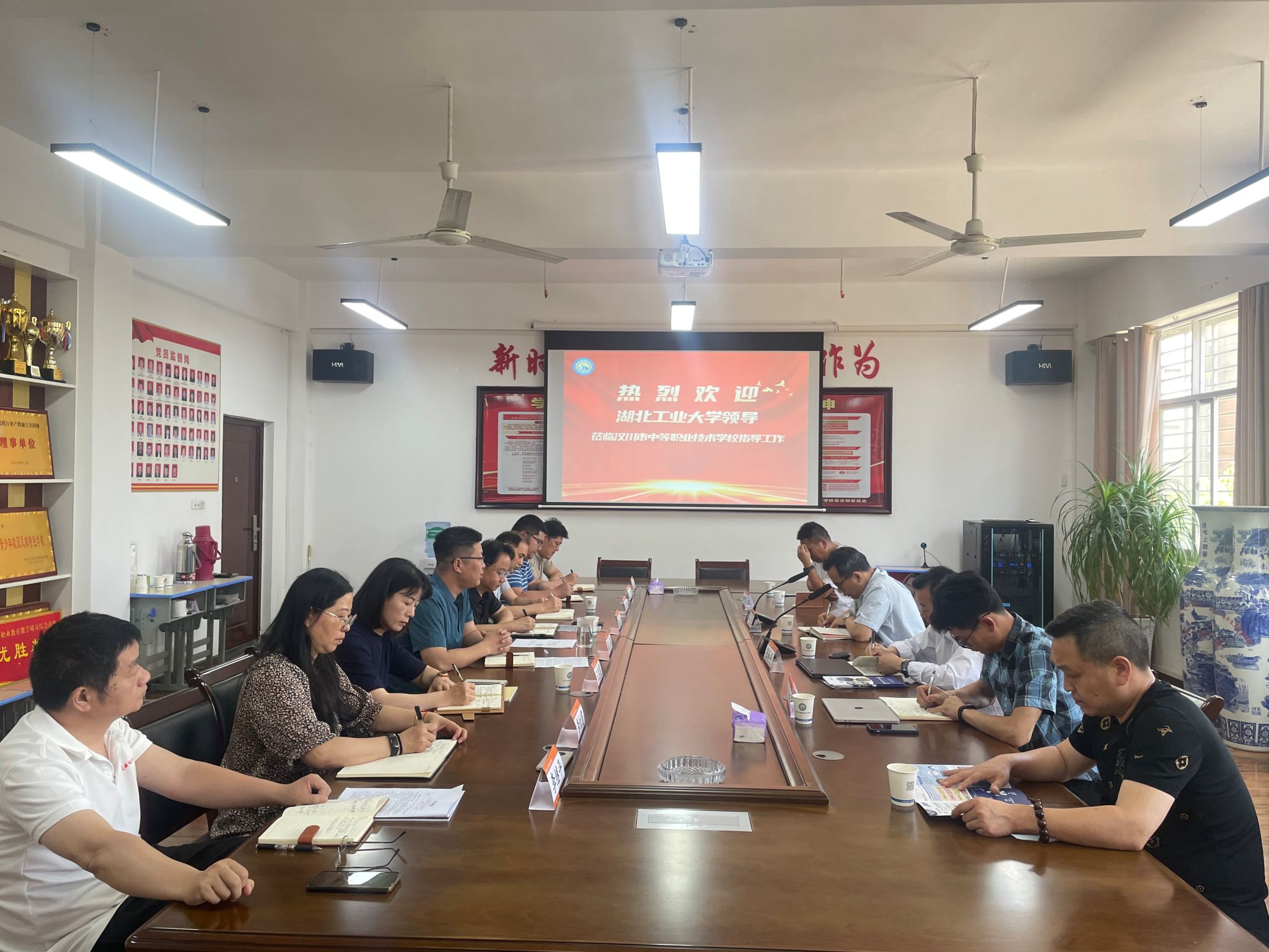 汉川市中等职业技术学校党总支书记韩炎斌、校长周同、副校长李著平及各职能部门负责人出席会议。