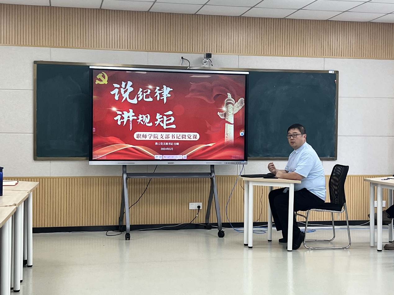 教工党支部书记汪曦讲授了党纪学习专题微党课《说纪律、讲规矩》。