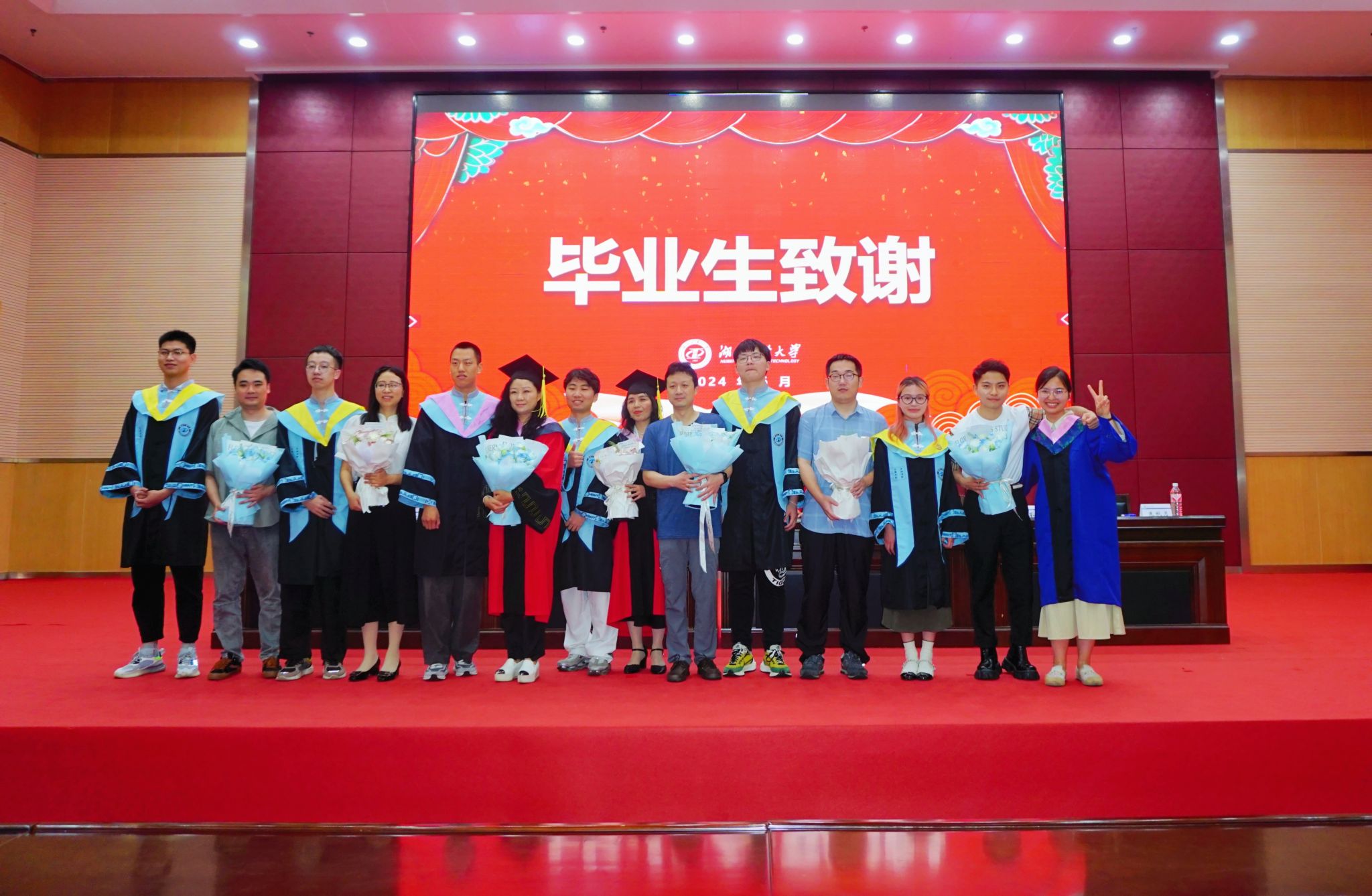 为表达对学校、学院培养的感谢,研支团成员余琮、考取教育方向研究生的冯一玲、参与多项学科竞赛与科研项目的黄继承、在大学生涯深受启发的吴天翔、发表中文核心期刊论文的邓雅秋在毕业典礼现场,分别向王侃老师、马丹老师、宋庭新老师、柳申奥老师、韦妙老师表达感谢。