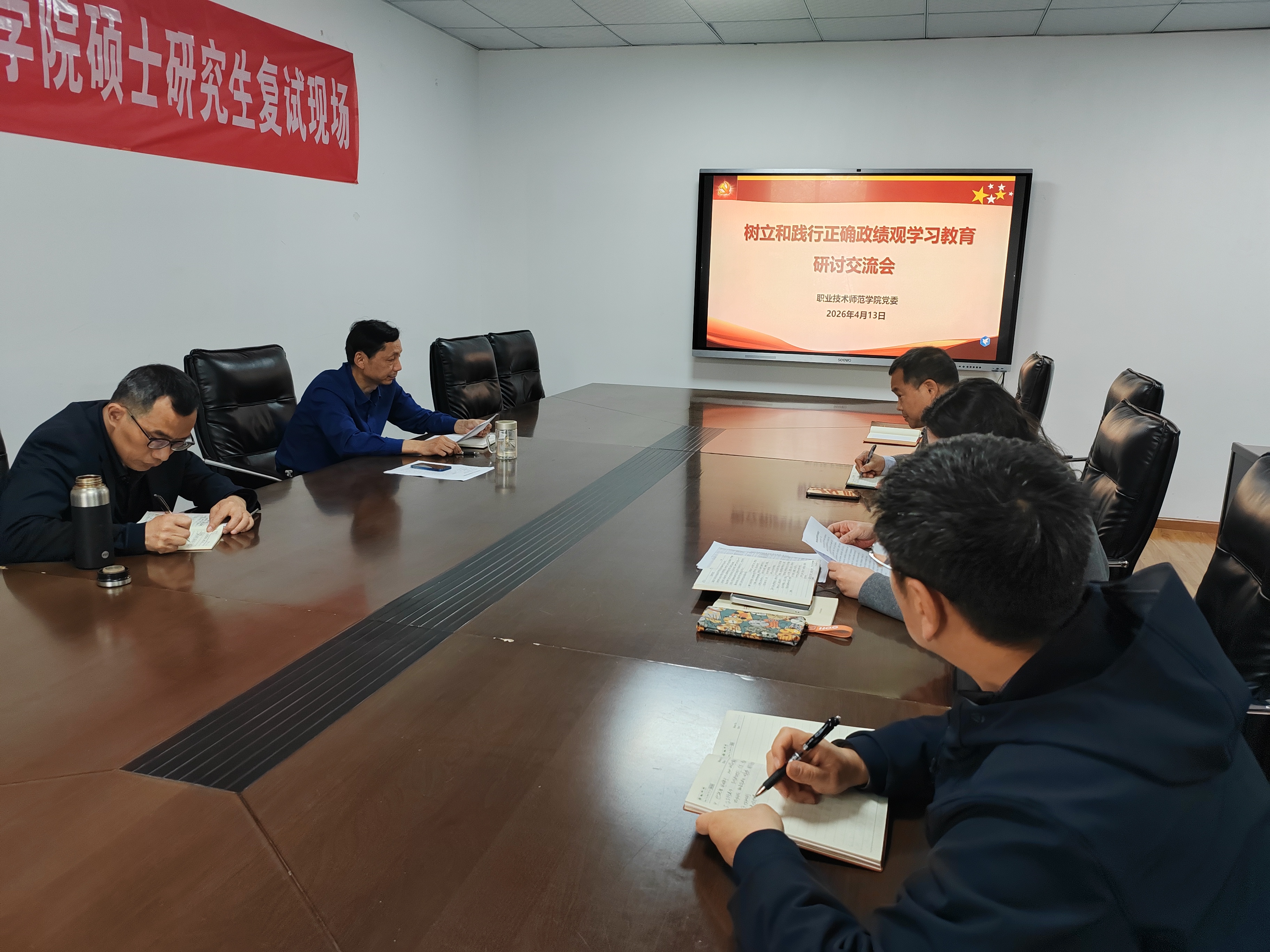 4月13日上午,学院党委召开树立和践行正确政绩观学习教育研讨交流会。会上,学院领导班子成员围绕“树立和践行正确政绩观,推动学院事业高质量发展”主题开展集体学习与交流研讨。