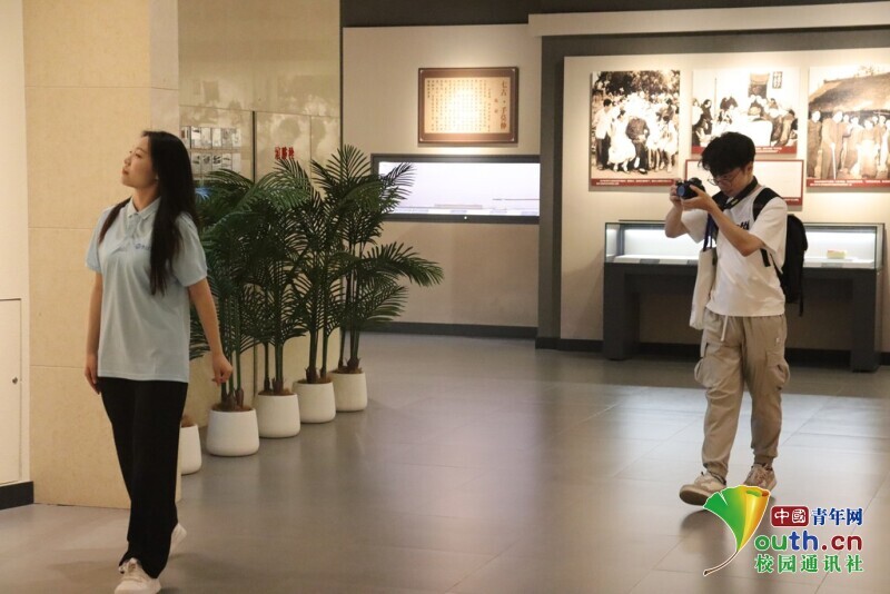 图为服务队成员在红色基地拍摄。江淑雅 供图