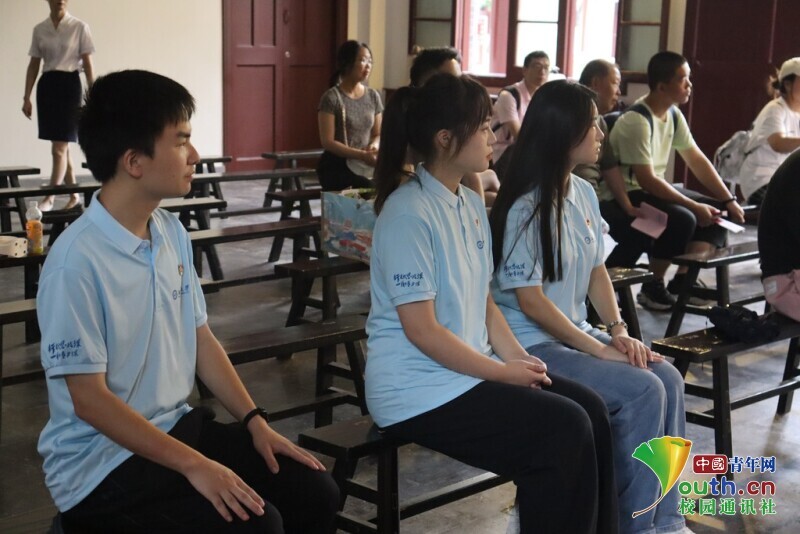图为服务队成员在红色基地听演讲。范嘉俊 供图