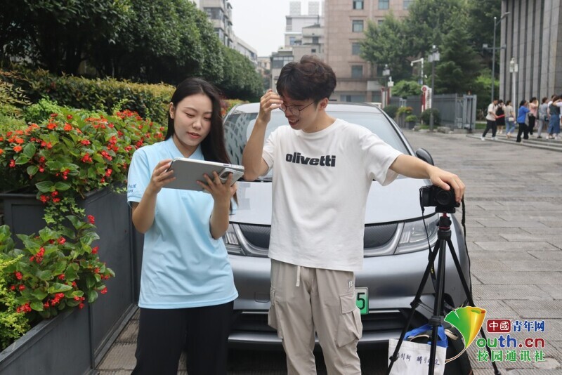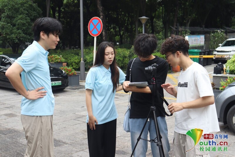 图为服务队成员一起讨论拍摄细节。江淑雅 供图