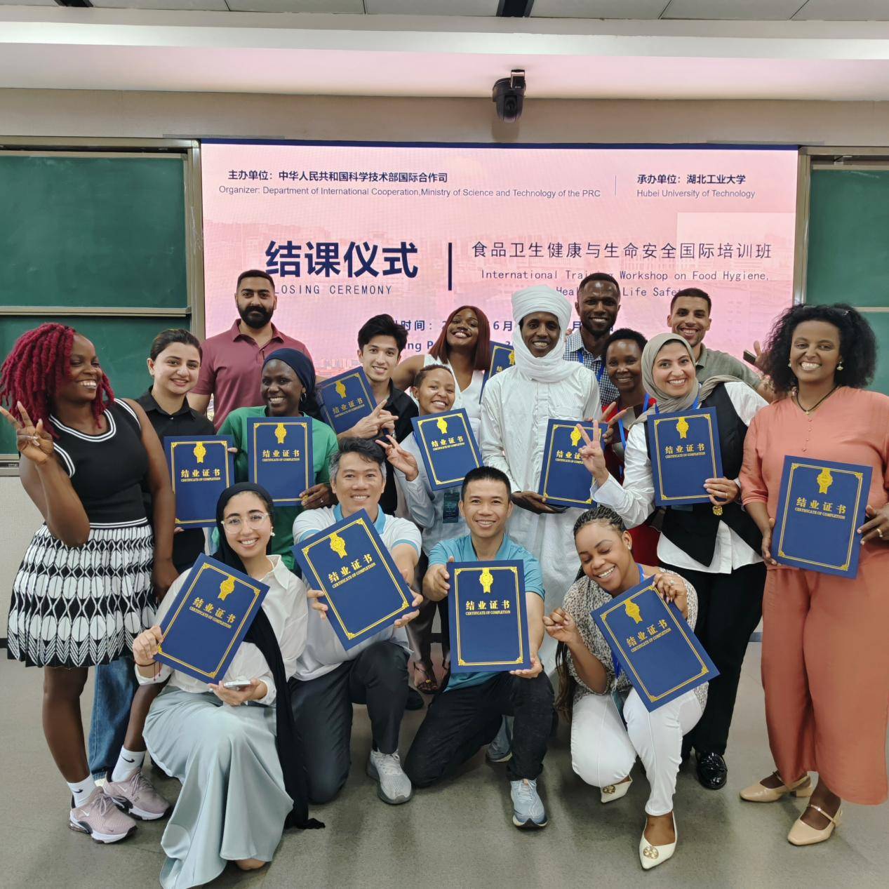 7月18日,“发展中国家食品卫生健康和生命安全国际培训班”在湖北工业大学举行结业仪式。来自埃塞俄比亚、坦桑尼亚、肯尼亚、埃及等12个亚非国家的20位食品卫生与生命安全领域的技术人员,历时20天培训,顺利完成学业。