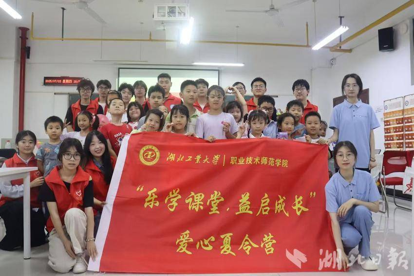 7月10日,湖北工业大学第四届“乐学课堂”暑期爱心夏令营圆满结业。活动现场,孩子们自信地展示才艺,甚至向大学生志愿者发起挑战,成为本次夏令营的一大亮点。