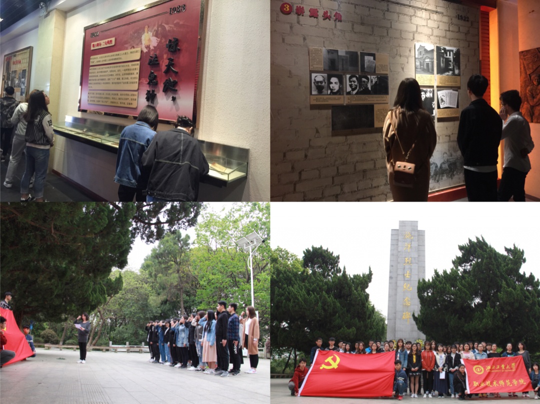 同学们参观了施洋烈士纪念馆,了解了施洋烈士生平事迹及“二七”工人运动历史。在施洋烈士纪念碑前,同学们怀着沉痛的心情向施洋烈士默哀,寄托哀思和崇敬之情。毕健同学代表新入党学生党员讲话,他号召同学们要积极学习专业知识,自觉砥砺品格,不忘初心、努力奉献,在学习和生活中时刻发挥党员先锋模范作用,不负先烈们的英勇献身。随后,梁高阳同学代表入党积极分子发言,她承诺要自律自强,奋发有为,努力成为合格的社会主义建设者和接班人。随后,在纪念碑前,30名党员郑重地举行了右手面对党旗庄严地宣誓。“为共产主义奋斗终身,随时准备为党和人民牺牲一切,永不叛党。”铮铮誓言久久回绕在青松翠柏间。