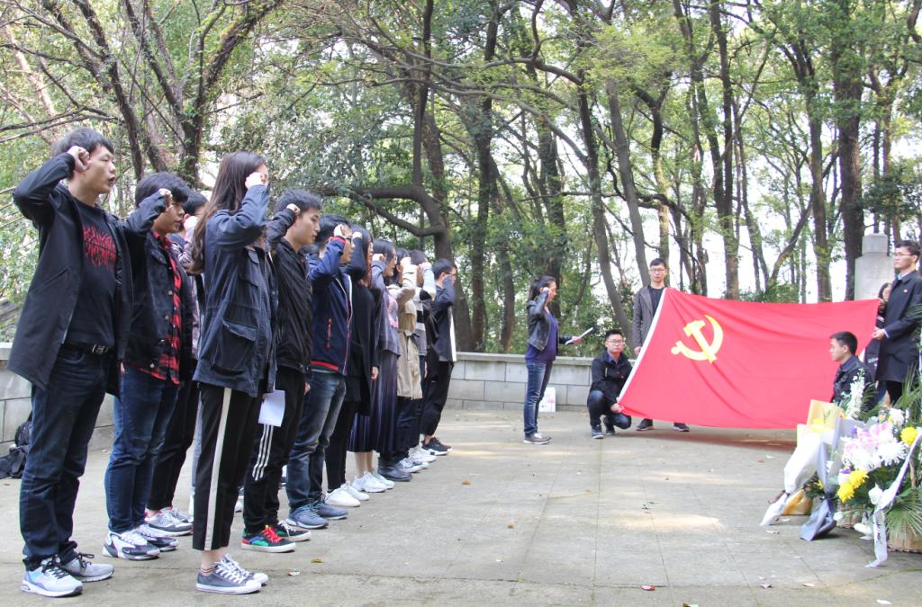伏虎山烈士陵园是武汉市著名烈士陵园,是辛亥革命、大革命、抗日战争不同历史时期的9位仁人志士安息之所。有辛亥首义烈士刘公,党的一大代表李汉俊烈士,抗日名将郝梦龄烈士等。同学们在李汉俊烈士墓前开展了集体悼念活动。大家向长眠于此的先烈们默哀并敬献了鲜花。随后,党员代表黄严格同学和入党积极分子代表张佳豪同学分别作了主题演讲。黄严格同学表示,要努力传承革命先烈伟大的爱国主义精神和敢于担当的责任意识,发挥党员的模范带头作用,勤奋学习,加强修为,完善人格,努力成才。张佳豪同学表示,要明确自身的使命,树立远大目标,提高政治理论素养,坚定理想信念,时刻以先辈的英勇事迹激励自己,为祖国的发展添砖加瓦。之后,新入党的学生党员在鲜红的党旗下进行了庄严的宣誓。“为共产主义奋斗终身,随时准备为党和人民牺牲一切,永不叛党。”这是先烈们用生命践行的誓言,也将是每一位党员们用行动履行的承诺。随后,同学们怀着沉痛的心情在每一座烈士墓前进行了悼念,寄去了哀思。
