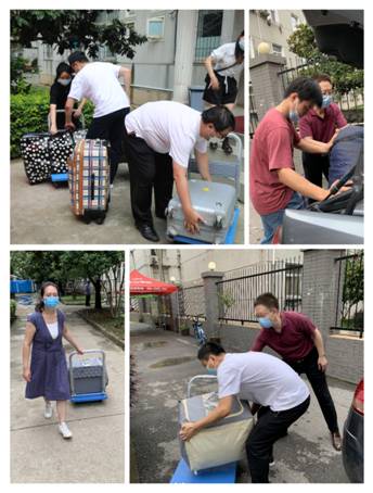 学院全体教师组建了志愿者车队,帮助学生运送行李,力保学生安全、顺利离校。临别之际,老师们一句句殷切嘱托,同学们一声声不舍告别,四年来的师生情谊淋漓尽致地展现。
