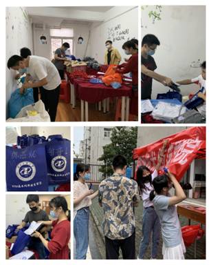 为高效完成毕业相关物品的发放工作,学工办老师和学生志愿者们加班加点将学院定制的毕业纪念文化衫、防护用品、矿泉水、爱心茶包、学士服等物品提前装袋,并一一标记学生姓名和衣服尺码,等待毕业生们的到来。