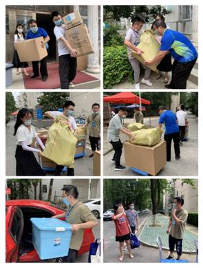 毕业生返校期间,教师志愿者们每天都早早地来到学生宿舍楼下,帮助毕业生们搬运行李。