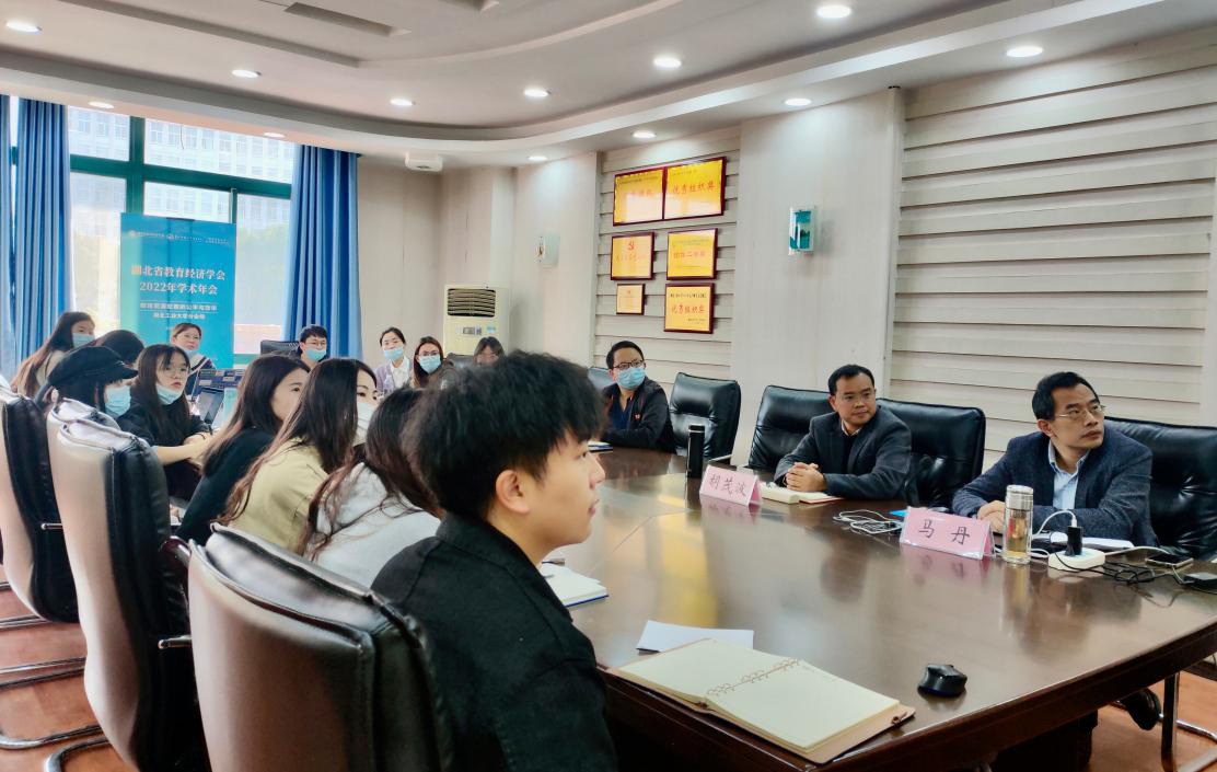 为深入贯彻党的二十大精神,推进湖北省教育高质量发展,11月6日,湖北省教育经济学会2022年学术年会采取“线上+线下”模式举行,会议主题为“教育资源配置的公平与效率”,累计超1000人次参会。团队承办职业教育分论坛。团队负责人马丹教授主持分论坛,团队成员胡茂波教授作主题报告。团队教师及研究生“线上+线下”参会。