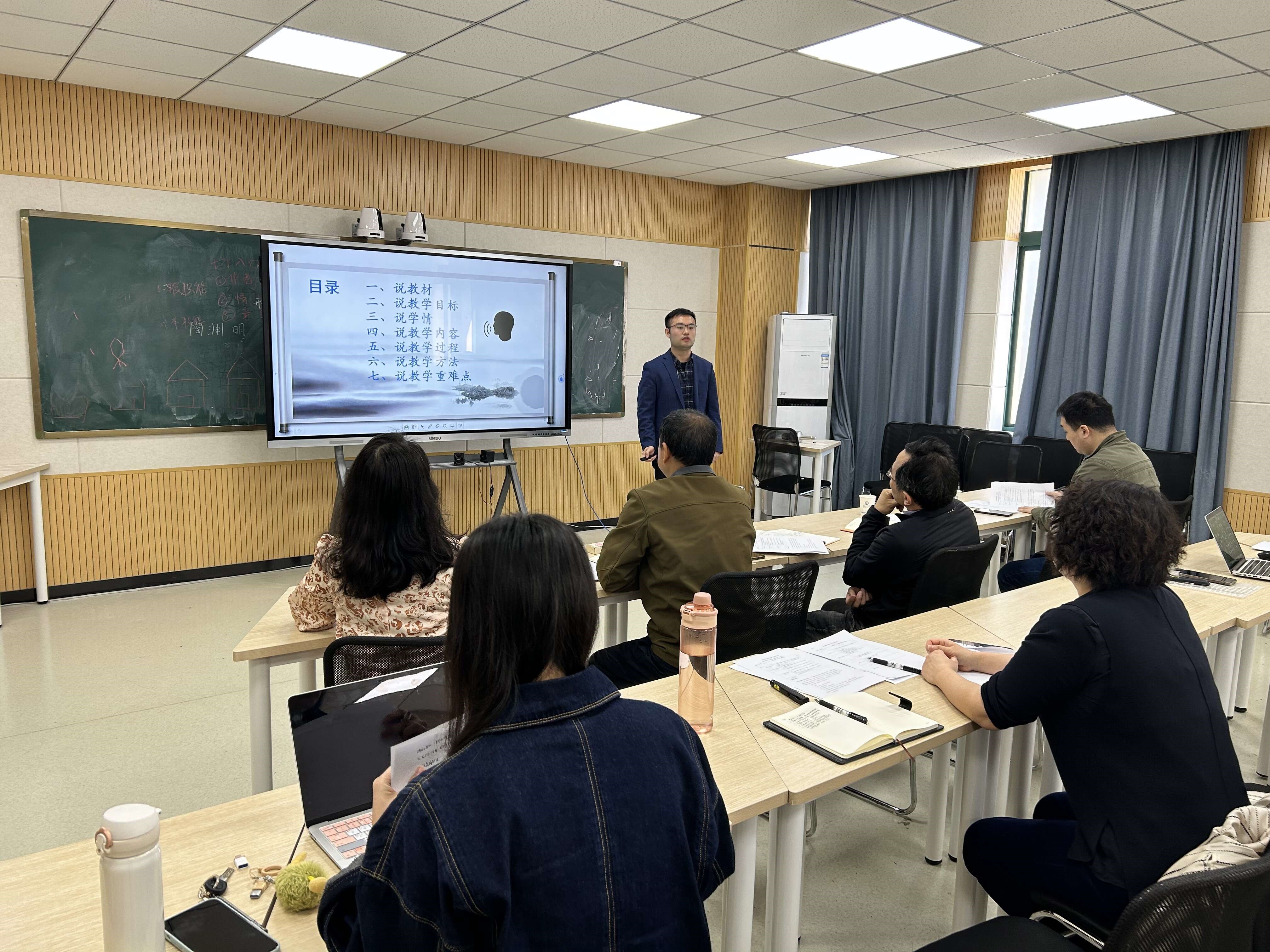 本次培训交流会基于专业化、标准化和个性化的原则,成立了由马丹院长、胡茂波教授、杨红荃老师、朱秋月老师和韦妙老师组成的专家组,主要从现场无学生试讲和个人职业发展规划两个方面对王薇、汪旭和杨秋月三位新进教师进行了差异化的专业指导。