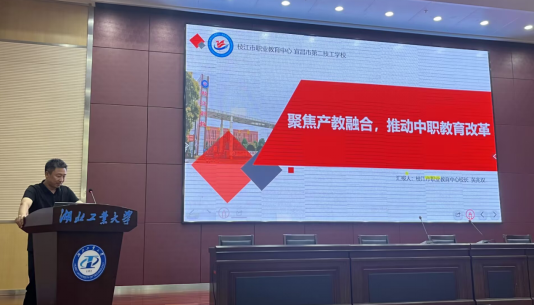 汉斯·赛德尔基金会特聘德国专家阿萨姆主讲了“德国职业学校学习领域——学习情境实施”讲座,为我国职业教育实施提供了相关经验。北京师范大学国家职业教育研究院院长和震就《构建技能社会与职业教育改革》作了报告。湖北工业大学职业技术师范学院副院长宋庭新教授以《中职学校教师职业能力素质测评与实施》为题作了报告,介绍了中职教师职业能力素质测评的7个一级指标、25个二级指标和138个观测点。华南师范大学职业教育学院院长刘志文就《产教融合与职业教育改革:理论、政策与实践》作了报告,从产教融合的理论认识、政策分析及实践探析三大方面进行深入剖析。武汉市交通学校党委书记黄贤文紧紧围绕“深化三教改革,助推专业内涵发展”为主题,对新能源汽车运用与维修优质专业建设进行了经验分享。枝江市职业教育中心校长黄兆双就《聚焦产教融合,推动中职教育改革》作了报告,他表示:“需高位引领职教改革,推进校企合作;优化职教类型定位,深化产教融合”。湖北工业大学职业技术师范学院院长马丹、副院长胡茂波分别针对区域特性,结合国家人才培养战略背景,围绕当前职业院校条件、人才培养情况、专业产出成果、中高职教育面临的新课题及未来发展趋势对就《红安双优建设的现状分析与优化建议》和《恩施职业技术学院“双高”建设》作了报告。