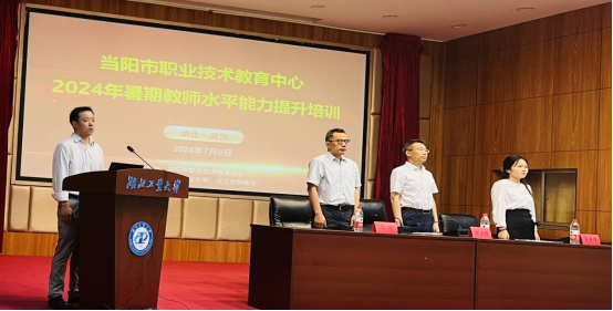 7月8日至7月12日,当阳职业技术教育中心2024年暑期教师水平能力提升培训在湖北工业大学举行,当阳职教中心校领导及120余名教师参加了此次培训,湖北工业大学职业技术师范学院和武汉智和教育共同为此次培训提供了支持与服务。开班仪式上,湖北省名师工作室马丹教授,当阳市职业技术教育中心校长罗书俊、党委副书记冯友胜、纪委书记王怀彬、副校长宋晓俏、武汉智和教育总监吴永珍等领导出席并致辞。