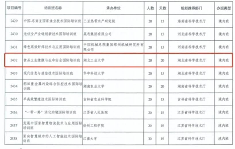 发展中国家技术培训班是科技部组织的为受援国举办的各种形式的技术人员短期培训班,是科技援外的重要形式之一。此次获批的发展中国家技术培训班项目由科技部国际合作司主办,湖北工业大学承办。此次项目得到了相关部门的大力支持,尤其是国际交流与合作处、科学技术发展研究院以及生命科学与健康工程学院的鼎力协助和合作。据项目计划,培训班将在2025年7月开班,拟招收学员来自非洲主要国家。如埃塞俄比亚、赞比亚、南非等“一带一路”沿线的发展中国家,每个国家选择5-6名培训者,总培训名额为20人,开展20天培训。培训期间,主要采取理论授课、实践操作、小组讨论、案例分析等相结合的教学模式,向学员介绍食品卫生健康与生命安全领域的中高端专业技术,传授包括食品处理、储存、运输和销售等各个环节的安全操作规范和先进适用的技术及发展前景。学院和学校将以此次培训班为契机,进一步搭建食品卫生健康与生命安全领域国际交流与合作平台,构建起中国—发展中国家新型战略伙伴关系,积极助力“一带一路”建设。